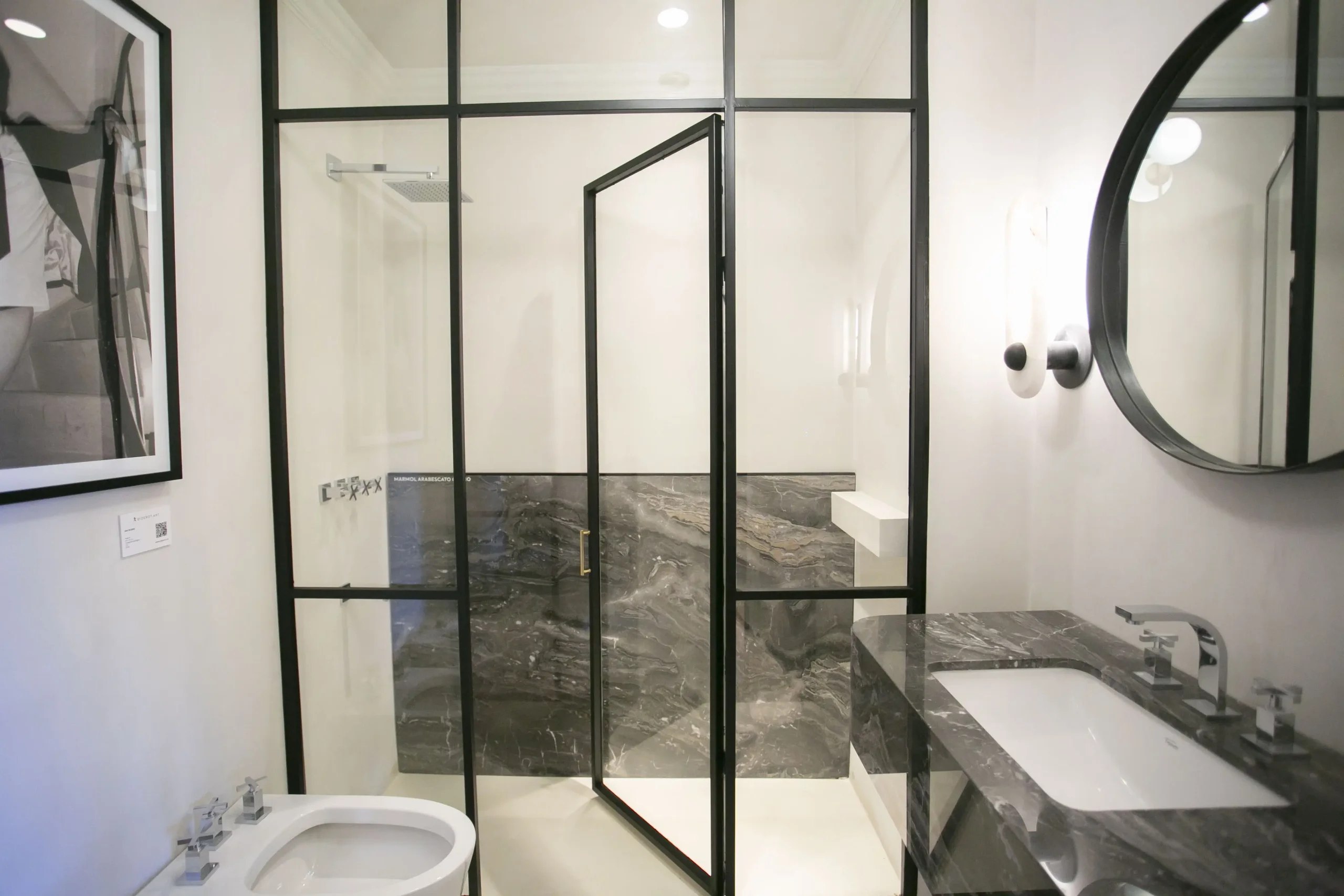 Este material es absolutamente combinable con todo tipo de materiales para plasmar diversos ambientes, desde los más elegantes y ostentosos, hasta los más neutros y minimalistas. Estéticamente se presenta con vetas blancas irregulares, que se lucen en mayor o menor medida según cada partida y contrastan a la perfección con su neto fondo negro.