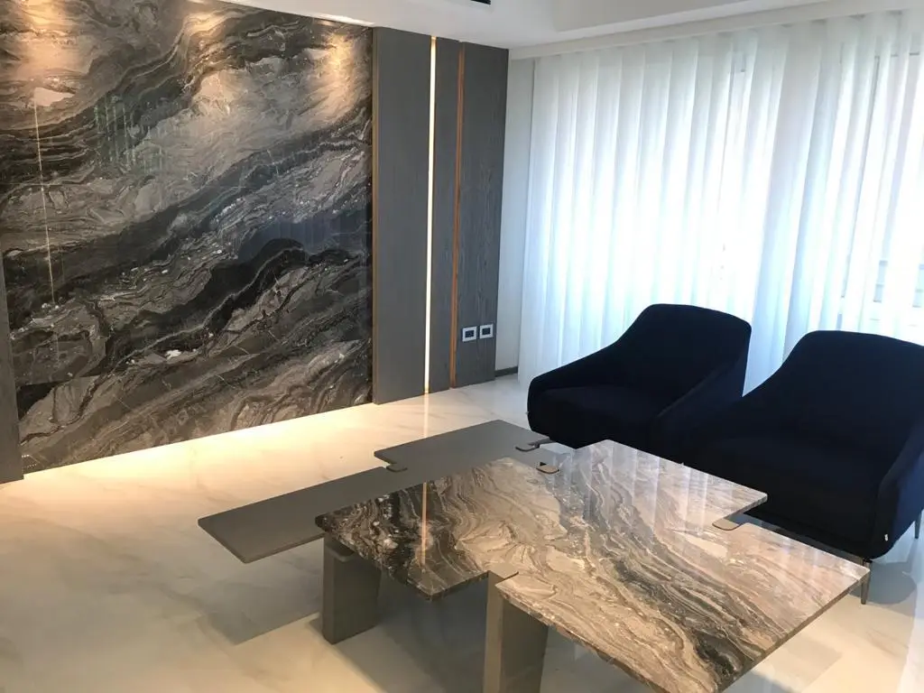 De notoria elegancia y carácter ostentoso, este material no pasará desapercibido en ningún espacio donde se lo implemente por tratarse de una piedra natural de alta gama. Se obtiene de la isla de Palmaria en Portovenere, Liguria, Italia. Posee un fondo negro en conjunción con numerosas y ondulantes vetas blancas, ocres y exquisitos reflejos dorados, tremendamente magnéticos y con muchísima personalidad.