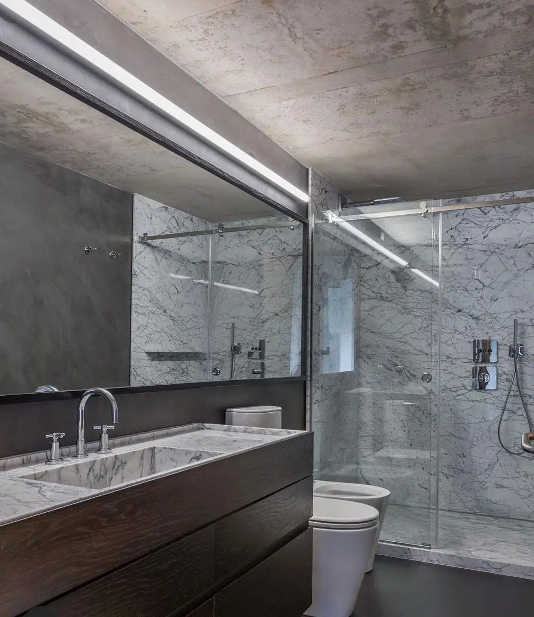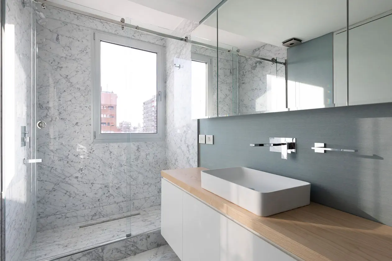 Perteneciente a la familia del Tundra Grey, este mármol se distingue por su base gris suave matizada con delicados tonos beige. Sus vetas blancas y ramificadas crean una superficie de gran riqueza visual que equilibra la sobriedad del gris con una calidez orgánica, resultando ideal para revestimientos elegantes que buscan una estética acogedora y sofisticada.