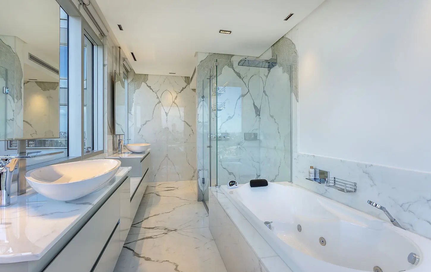 Este mármol se distingue por su profundo tono café oliva, una base cálida y sobria que aporta serenidad a los ambientes. Su superficie está delicadamente trazada por vetas blancas y ocres que se entrecruzan de forma errática, logrando una estética natural y refinada ideal para revestimientos interiores que buscan un lujo discreto y acogedor.
