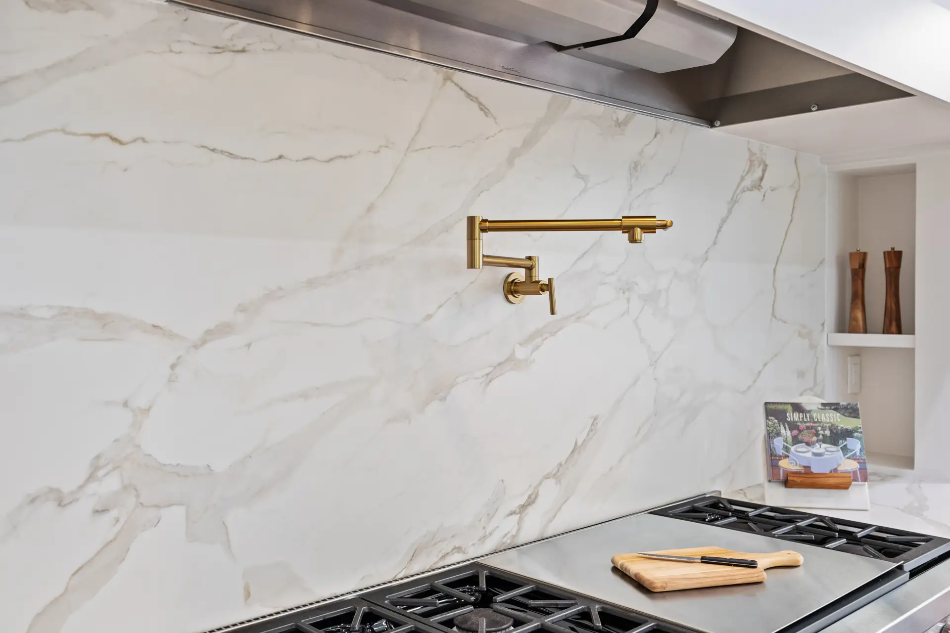 Replicando el estilo de mármol por excelencia con vetas de color gris suave acentuando la superficie blanca clásica, Bello / Terra también cuenta con un acabado pulido lustroso. La naturaleza reflectante del llamativo color se debe al tratamiento nano-tecnológico y al proceso de pulido mecánico que experimenta, dando como resultado un brillo similar al cristal.