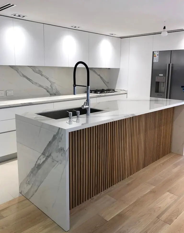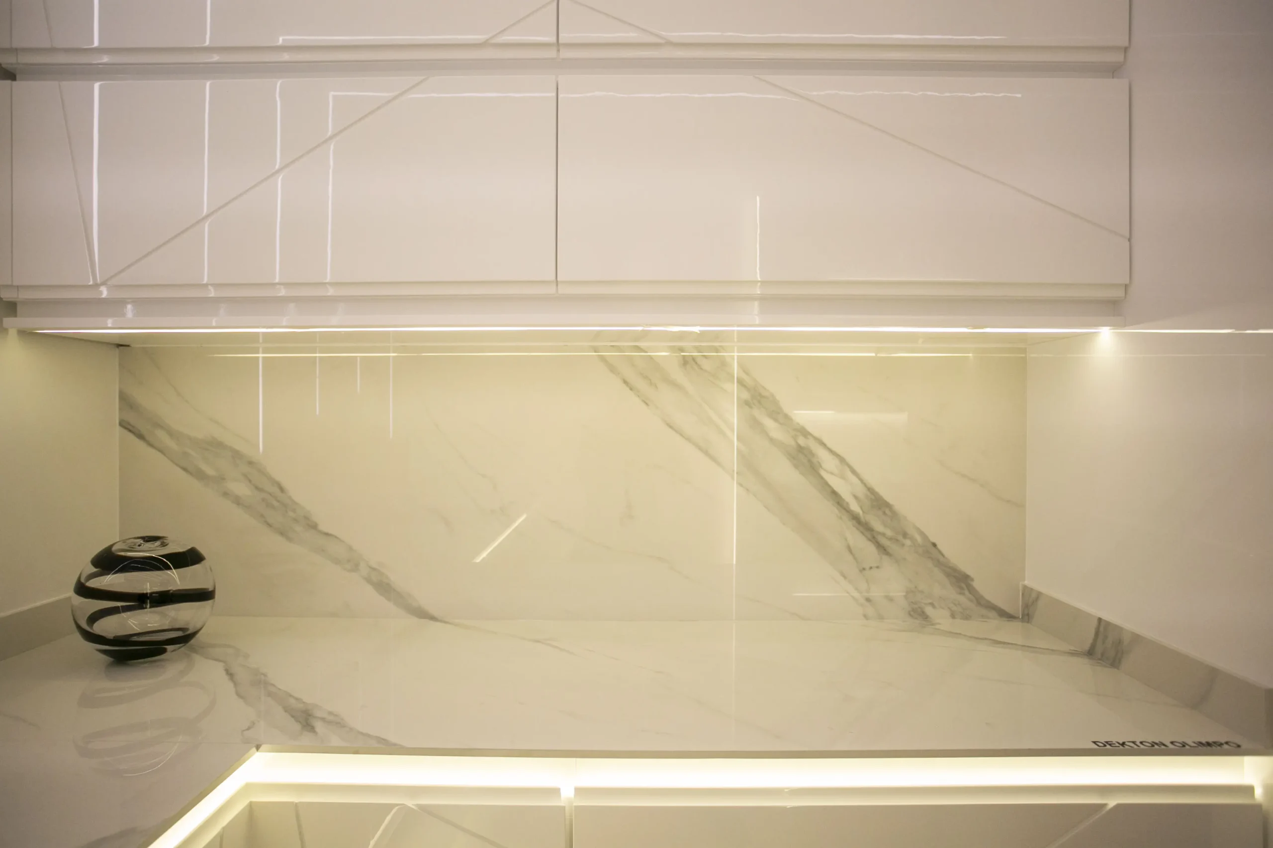Inspirado en el carrara de más alto valor, Olimpo es la versión de Dekton Stonika para el público más exigente. Este color muestra la elegancia de una veta en tonos grisáceos, protagonista sobre un fondo blanco, potenciando todos sus detalles con un brillo deslumbrante.