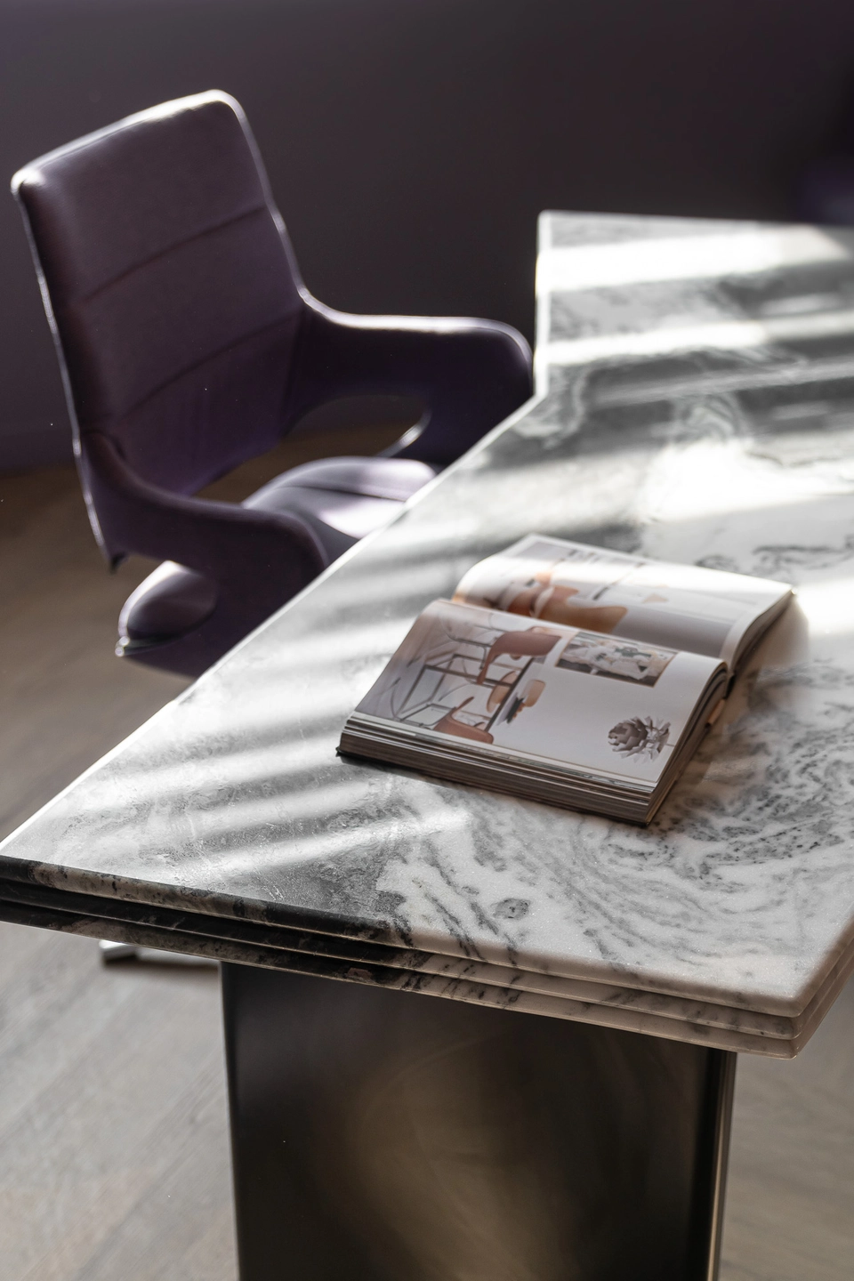 Elegante y luminoso. De fondo blanco y vetas sutilmente grises, con posibilidad de ser combinado con un sin fin de materiales, acabados y texturas generando ambientes radiantes y sofisticados.