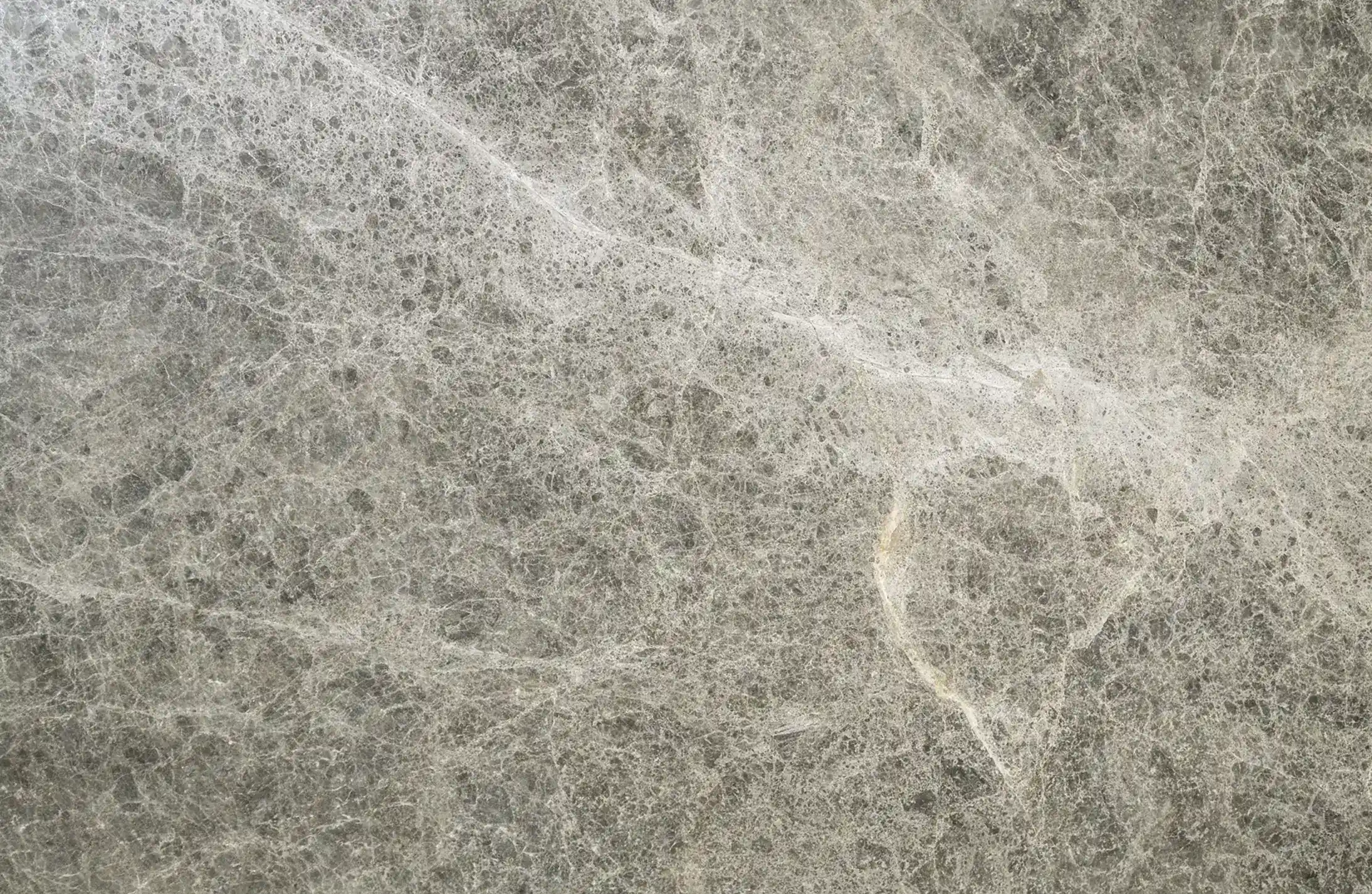 Perteneciente a la familia del Tundra Grey, este mármol se distingue por su base gris suave matizada con delicados tonos beige. Sus vetas blancas y ramificadas crean una superficie de gran riqueza visual que equilibra la sobriedad del gris con una calidez orgánica, resultando ideal para revestimientos elegantes que buscan una estética acogedora y sofisticada.